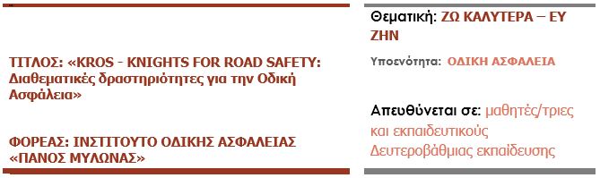 387_Kros - Knights for Road Safety: Διαθεματικές Δραστηριότητες για την Οδική Ασφάλεια (Ινστιτούτο Οδικής Ασφάλειας Πάνος Μυλωνάς)