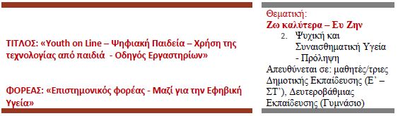 485_Youth on Line - Ψηφιακή Παιδεία – Χρήση της Τεχνολογίας από Παιδιά - Οδηγός Εργαστηρίων (Επιστημονικός φορέας - Μαζί για την Εφηβική Υγεία)