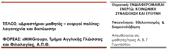 Δραστήριοι μαθητές – ενεργοί πολίτες: λογοτεχνία και δικτύωση